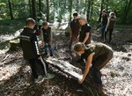 Junge Erwachsene beim Pflegeeinsatz auf der Wacholderheide