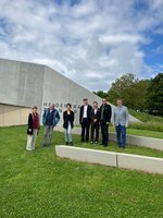 Welche innovativen, nachhaltigen Projekte können das Biosphärengebiet Schwäbische Alb und die Region am Heidengraben zusammen angehen? Wie können die Potenziale besser ausgeschöpft werden und wo können Kooperationen gemeinsam für mehr Nachhaltigkeit in den drei Kommunen entstehen? Diese Fragen waren der Anlass des Besuchs des Regierungspräsidenten Klaus Tappeser im Heidengrabenzentrum und am Heidengrabenturm am 26. Mai 2025. Gemeinsam diskutierten der Regierungspräsident, die Bürgermeister der drei Kommunen des Zweckverbands Region am Heidengraben, Siegmund Ganser (Hülben), Roman Weiß (Erkenbrechtsweiler) und Patrick Docimo (Grabenstetten) sowie Achim Nagel, Leiter der Geschäftsstelle des Biosphärengebiets Schwäbische Alb, Heidrun Nübling (Geschäftsstelle Biosphärengebiet Schwäbische Alb) und Tanja Breitenbücher (Leiterin der Geschäftsstelle Zweckverband Region am Heidengraben, Heidengrabenzentrum) über die Entwicklungsmöglichkeiten der Region im Biosphärengebiet - dabei wurden bereits erste Ansätze für eine weiterhin erfolgreiche Zusammenarbeit entwickelt.