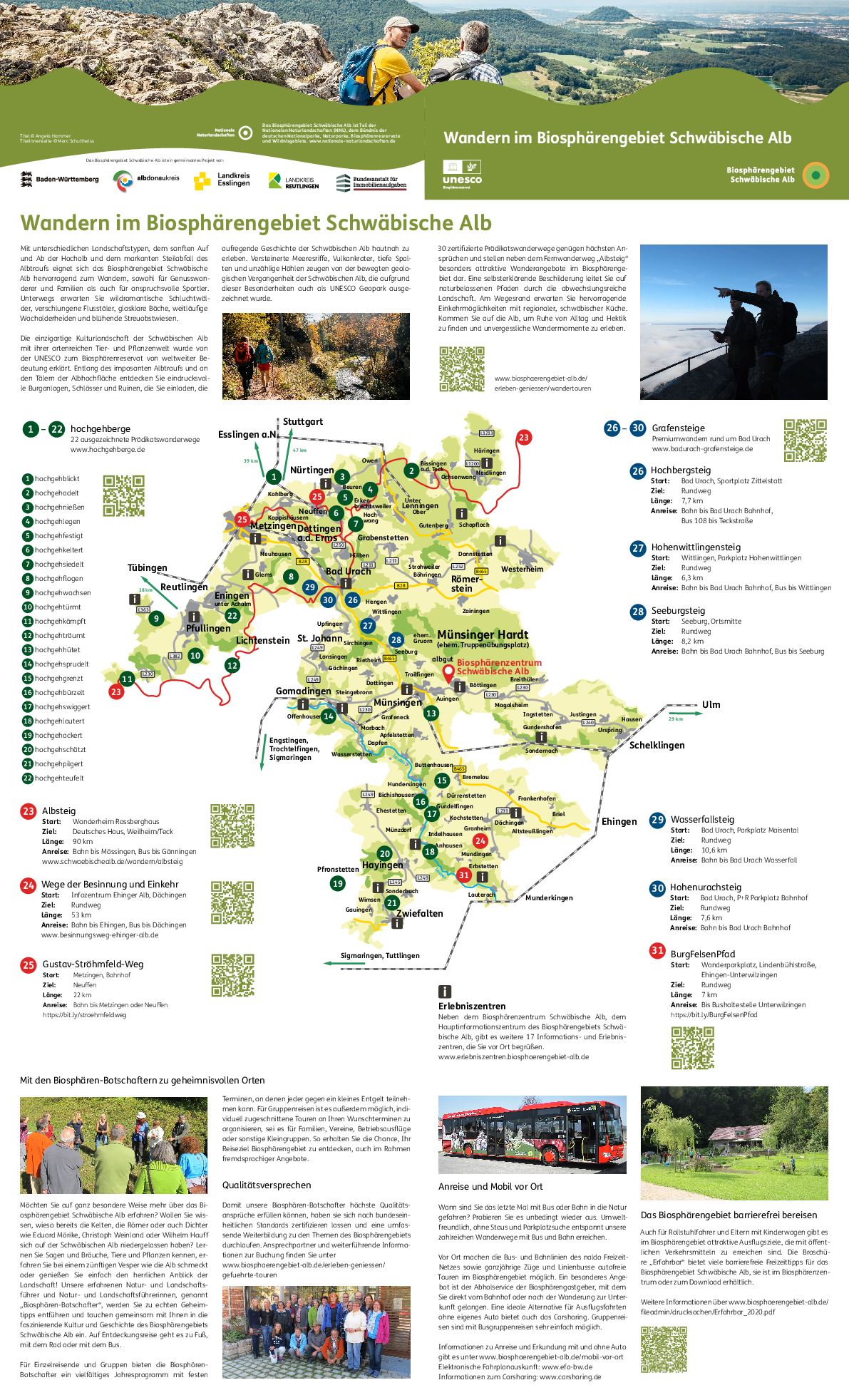 Dieser Service ist für Sie kostenfrei. Spenden zugunsten des Vereins "Biosphärengebiet Schwäbische Alb e.V." sind herzlich willkommen.